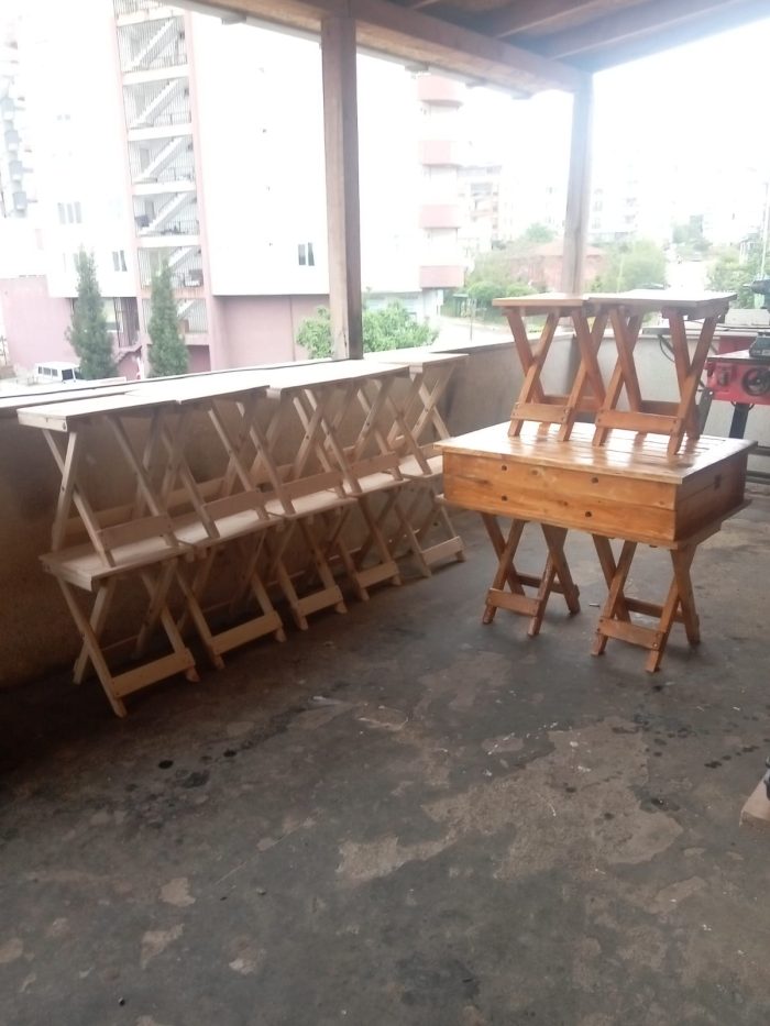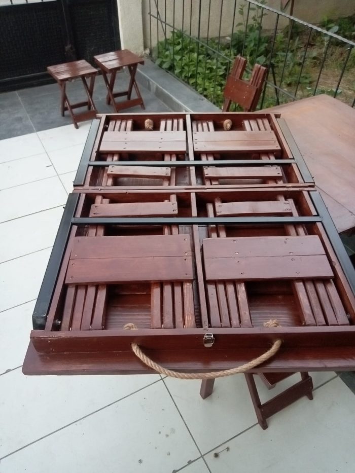 Ahşap valiz tipi katlanabilen tabureler ve kamp masaları için iletişime geçin. İster seniz tercihinize göre tasarımlar oluşturabiliriz